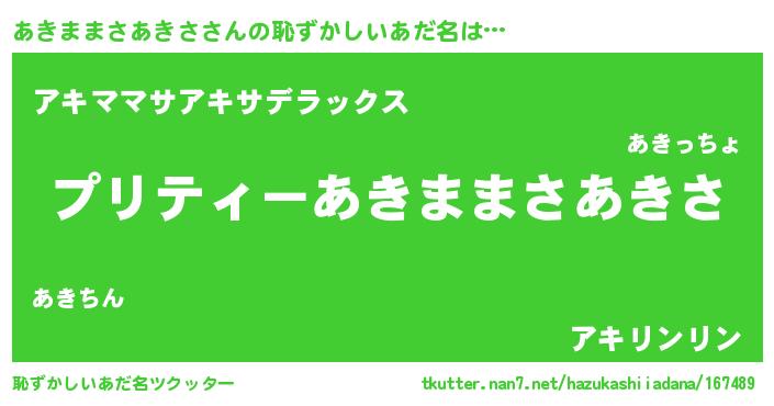 | 男性向けラノベタイトル風あだ名 | 『あきままさあきさの憂鬱』 |