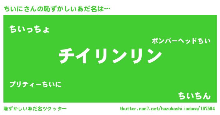 | ヘコむあだ名 | 『ちいっちょ』『豆乳』『ちいに(笑)』 |