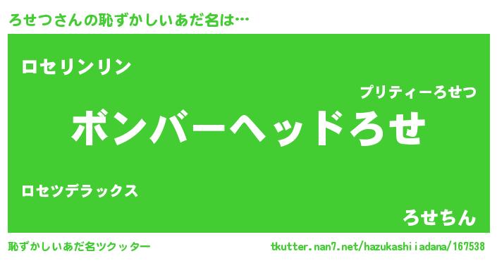 | ヘコむあだ名 | 『ろせっちょ』『ろせつ(笑)』 |
