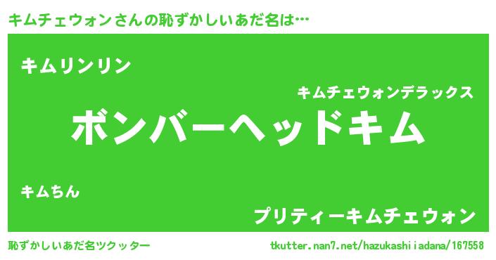 | 意味不明あだ名 | 『住所不定無職キムチェウォン(65歳)』 |