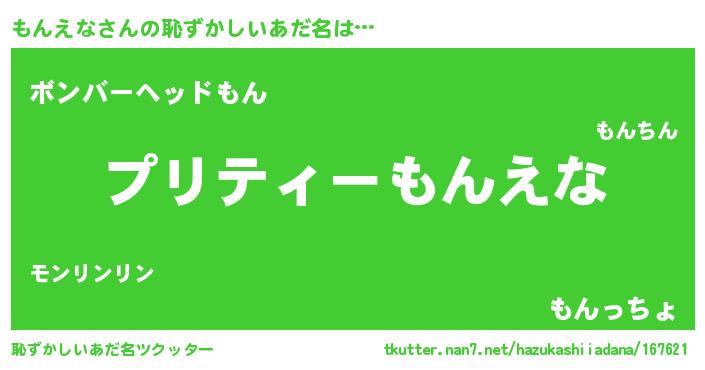 | 意味不明あだ名 | 『ペロリンもんえな』『永久保存もんえな』 |