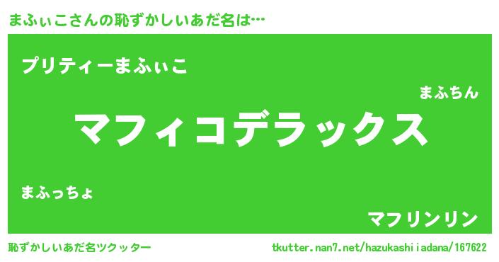 | 男性向けラノベタイトル風あだ名 | 『Re:まふぃこから始める異世界生活』 |