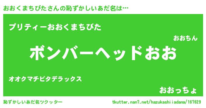 | 男性向けラノベタイトル風あだ名 | 『おまえをオタクにしてやるから、俺をおおくまちびたにしてくれ! 』 |