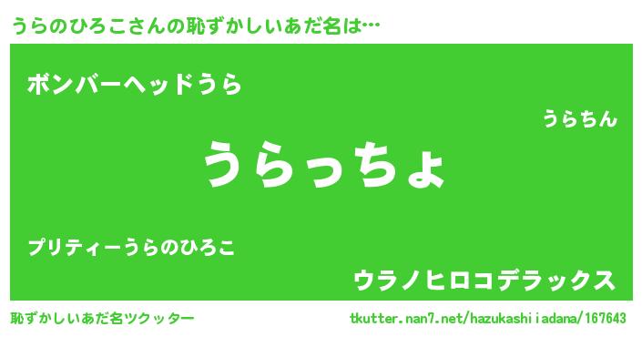| 肩書あだ名 | 『うらのひろこ中将』『うらのひろこ教授』 |