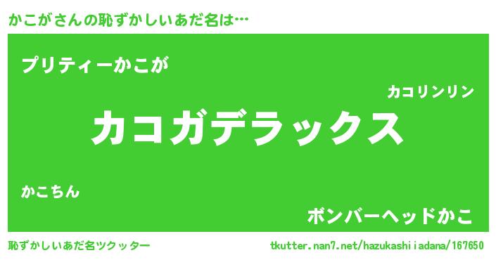 | ヒーロー風カッコイイあだ名 | 『仮面カコダー』『究極戦士カコガ』 |