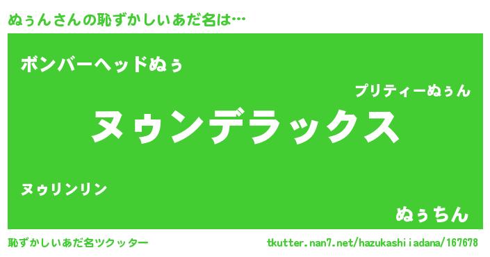 | 意味不明あだ名 | 『自称ぬぅん』『もやし科ぬぅん属』 |