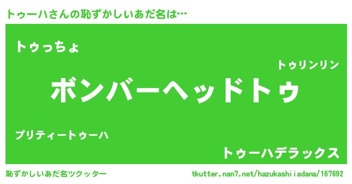 | ヒーロー風カッコイイあだ名 | 『仮面トゥダー』『天空の使者トゥーハ』 |