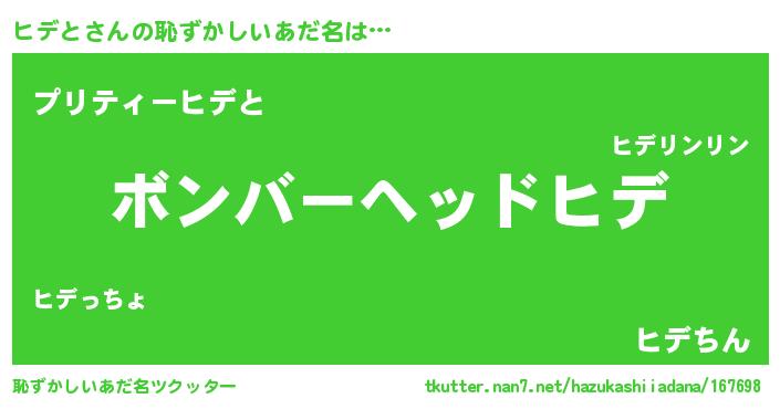 | 意味不明あだ名 | 『住所不定無職ヒデと(95歳)』 |