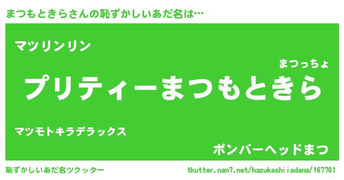 | 意味不明あだ名 | 『住所不定無職まつもときら(71歳)』 |