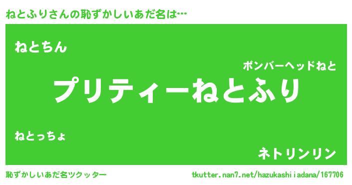 | ヘコむあだ名 | 『ねともー』『ねとふり(震え声)』 |