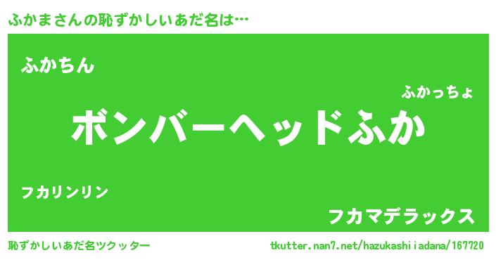 | 意味不明あだ名 | 『眠気覚ましガムふかま味』『自称ふかま』 |