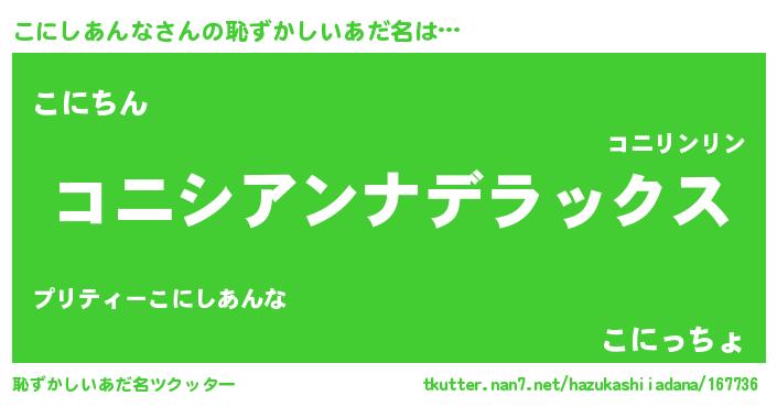 | ヘコむあだ名 | 『こにしあんな(笑)』『牛乳』 |