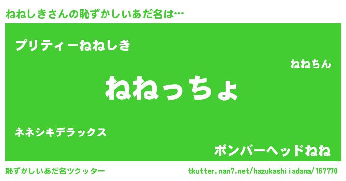 | 意味不明あだ名 | 『ねねしきフォーエバー』 |