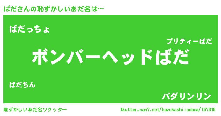 | ヒーロー風カッコイイあだ名 | 『愛の使者ばだ』『ウルトラばだマン』 |