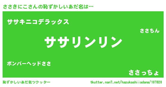 | 意味不明あだ名 | 『とにかく怪しいささきにこ』 |