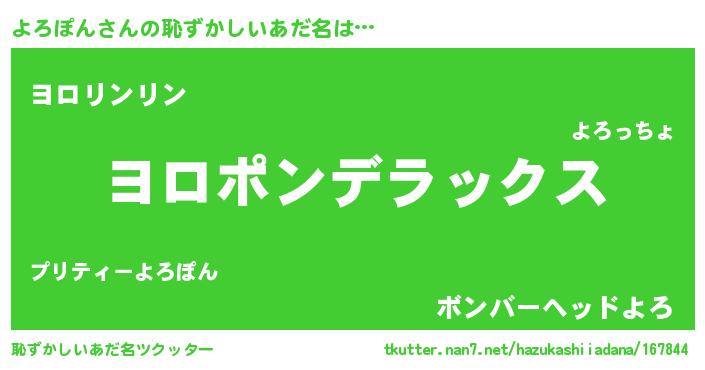 | 意味不明あだ名 | 『住所不定無職よろぽん(11歳)』 |