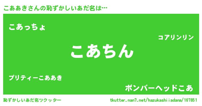 | ヘコむあだ名 | 『こああき(苦笑)』『牛乳』 |