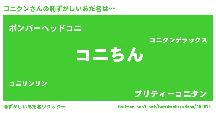 | 男性向けラノベタイトル風あだ名 | 『コニタンという概念が存在しない退屈な世界 』 |