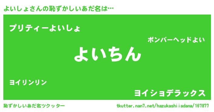 | ヘコむあだ名 | 『よいしょ(遠い目)』『よいふぇ~』 |