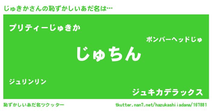 | ヘコむあだ名 | 『じゅきか(小並感)』『じゅもー』 |