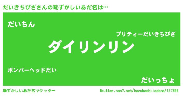 | 意味不明あだ名 | 『住所不定無職だいきちぴざ(4歳)』 |