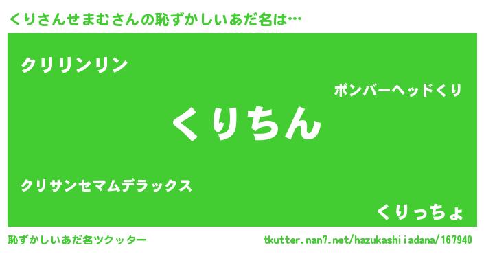 | ヘコむあだ名 | 『くりさんせまむ(笑)』『くりっちょ』 |