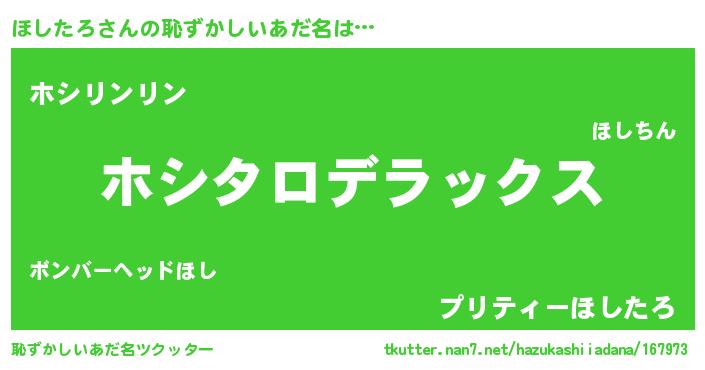 | 男性向けラノベタイトル風あだ名 | 『Re:ほしたろから始める異世界生活』 |