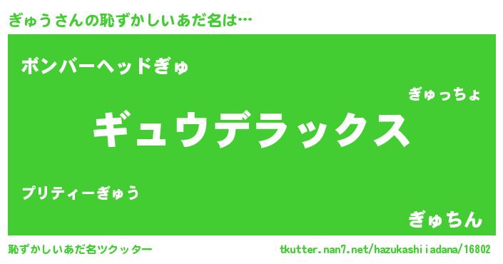 | ヒーロー風カッコイイあだ名 | 『仮面ギュダー』『サイバー戦士ギュウ』 |