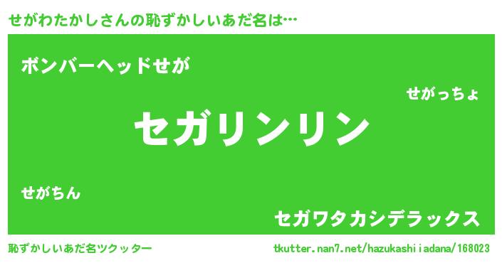 | ヘコむあだ名 | 『せがを』『牛乳』『せがっふぃ~』 |