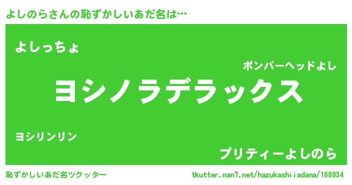 | 意味不明あだ名 | 『自称よしのら』『よしのらフォーエバー』 |