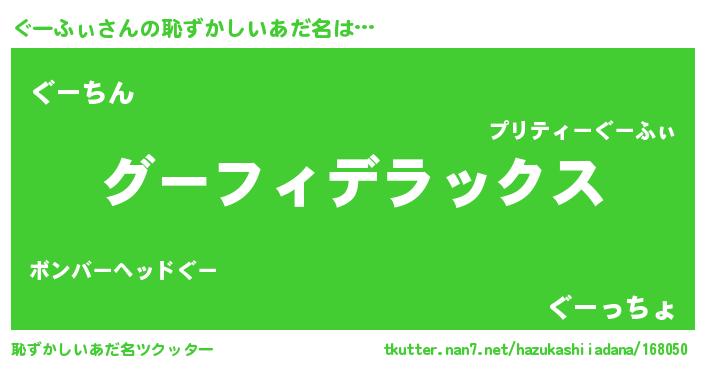 | ヒーロー風カッコイイあだ名 | 『超時空戦士グーフィ』『ネオグーフィ』 |