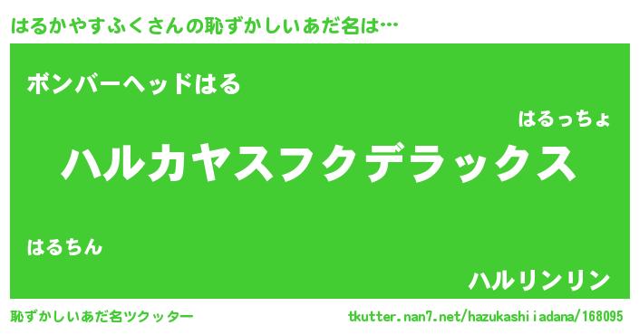 | ヒーロー風カッコイイあだ名 | 『ウルトラ戦士ハルカヤスフク』 |