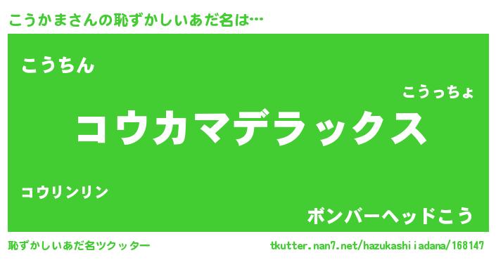| 意味不明あだ名 | 『自称こうかま』『永久保存こうかま』 |