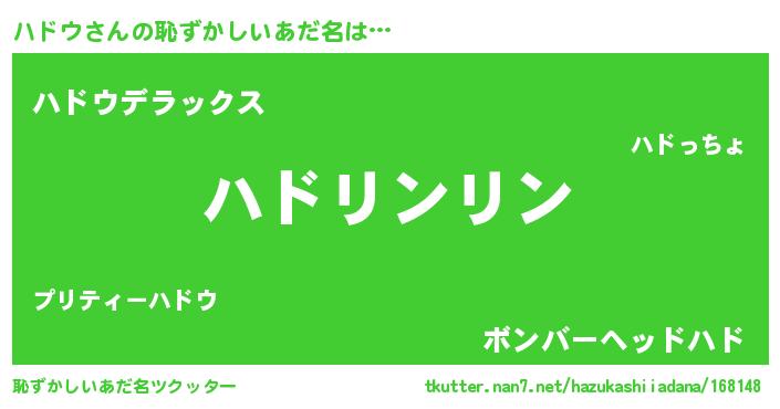 | ポケモン風あだ名 | 『ヒハドウ』『ハドゴンZ』『ハードイ』 |