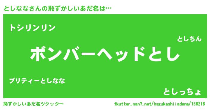| ヘコむあだ名 | 『としを』『酢こんぶ』『としふぇ~』 |