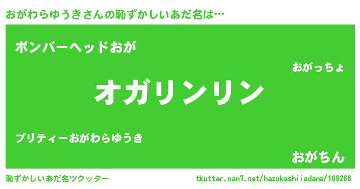 | ヘコむあだ名 | 『おがぷりん』『おがわらゆうき(苦笑)』 |