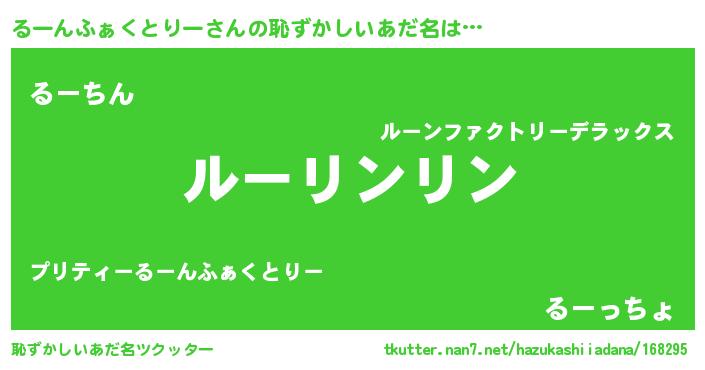| ヘコむあだ名 | 『るーお』『るーんふぁくとりー(笑)』 |