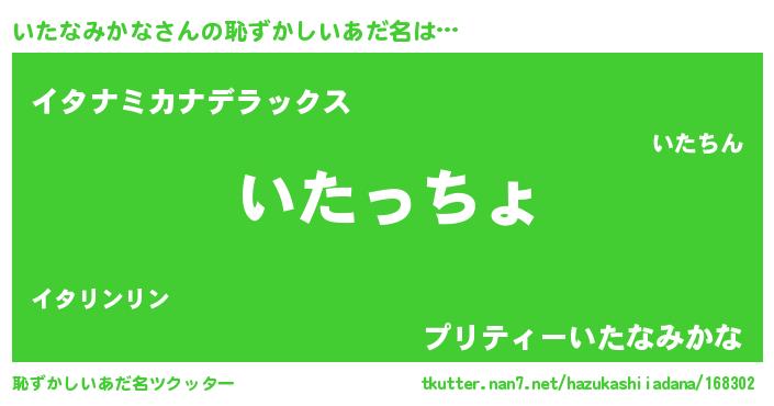 | ヒーロー風カッコイイあだ名 | 『仮面イタダー』『スーパーイタナミカナ』 |