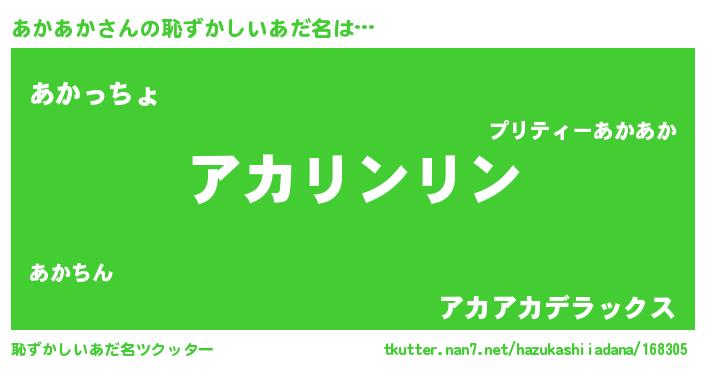 | 意味不明あだ名 | 『とにかく怪しいあかあか』 |