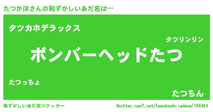 | 胡散臭い通販商品みたいなあだ名 | 『あなたにだけ特別に提供する世界で10本だけ現存している希少なブランデー…その名も「たつかほ」』 |