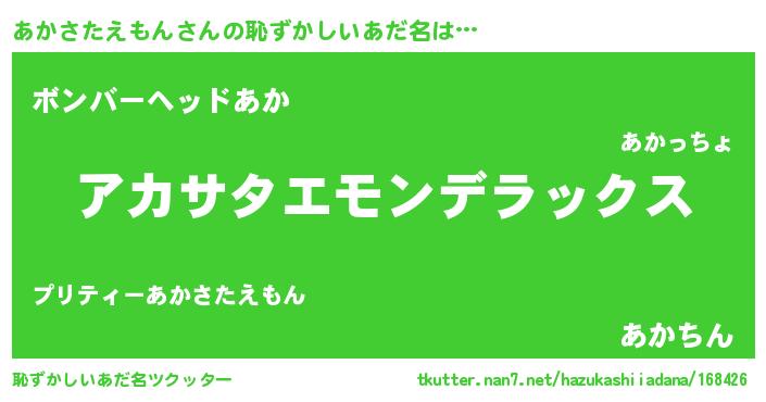 | 意味不明あだ名 | 『住所不定無職あかさたえもん(7歳)』 |