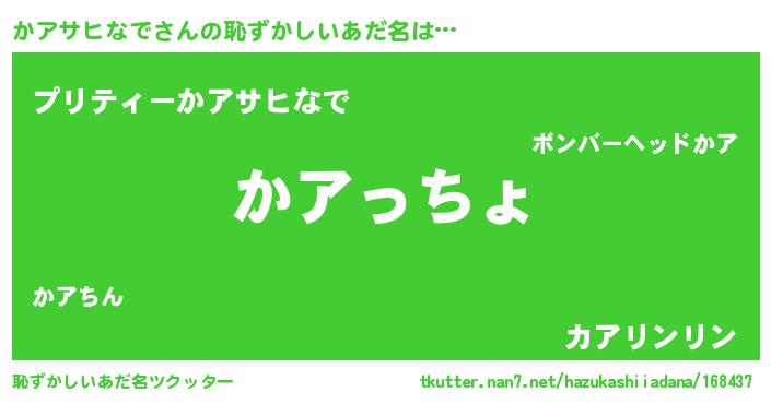 | 男性向けラノベタイトル風あだ名 | 『転生したらかアサヒなでだった件』 |