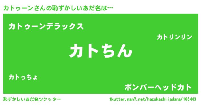 | 意味不明あだ名 | 『永久保存カトゥーン』『自称カトゥーン』 |