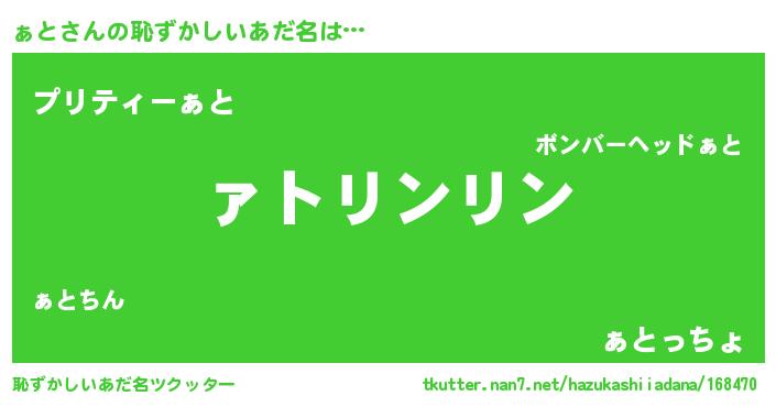 | 意味不明あだ名 | 『とにかく怪しいぁと』『もやし科ぁと属』 |