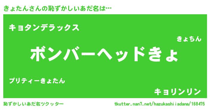 | ヒーロー風カッコイイあだ名 | 『天空の使者きょたん』『仮面キョダー』 |