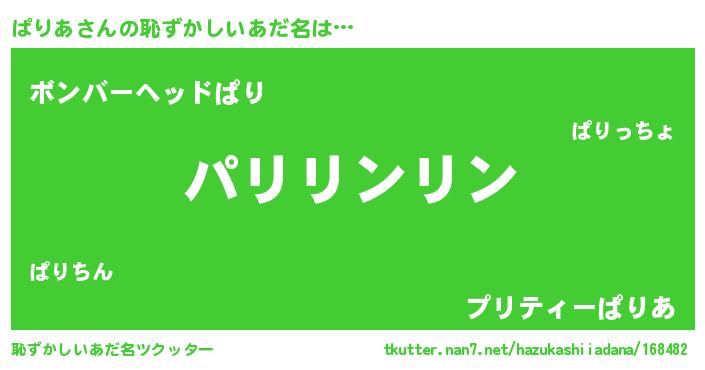 | 胡散臭い通販商品みたいなあだ名 | 『信頼と実績のサプリメント…その名も「ぱりあ」』 |