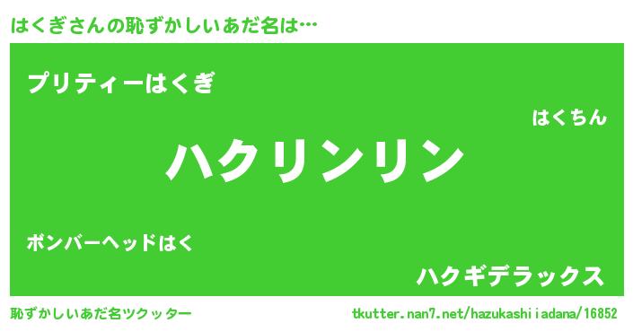 | ポケモン風あだ名 | 『ヒハクギ』『ハクチュウ』 |