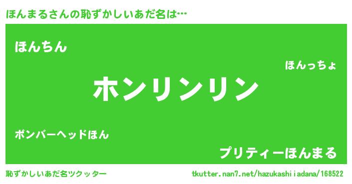 | 男性向けラノベタイトル風あだ名 | 『うちのほんまるが世界を掌握している!』 |