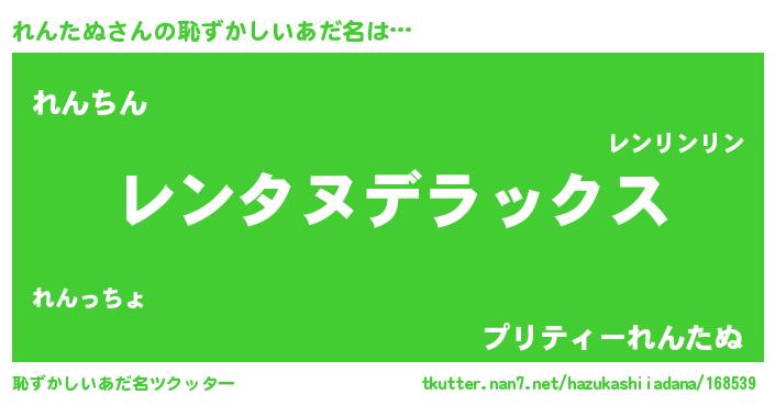 | 意味不明あだ名 | 『自称れんたぬ』『永久保存れんたぬ』 |