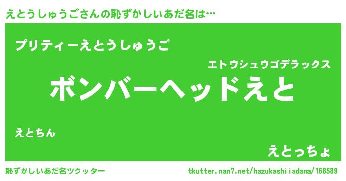 | 男性向けラノベタイトル風あだ名 | 『転生したらえとうしゅうごだった件』 |